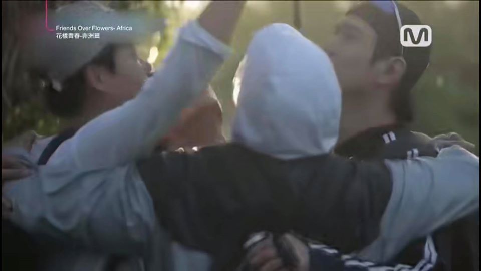 也是這一群男孩揮灑的青春,每一時每一刻都大喊感謝,於是當他們抵達終點維多利亞瀑布,當他們身處在彩虹光圈裡,興奮的團抱著又哭又笑,又叫又跳,在螢幕前的我也忍不住哭了。(朴寶劍真是一個很感性的小男孩啊!)