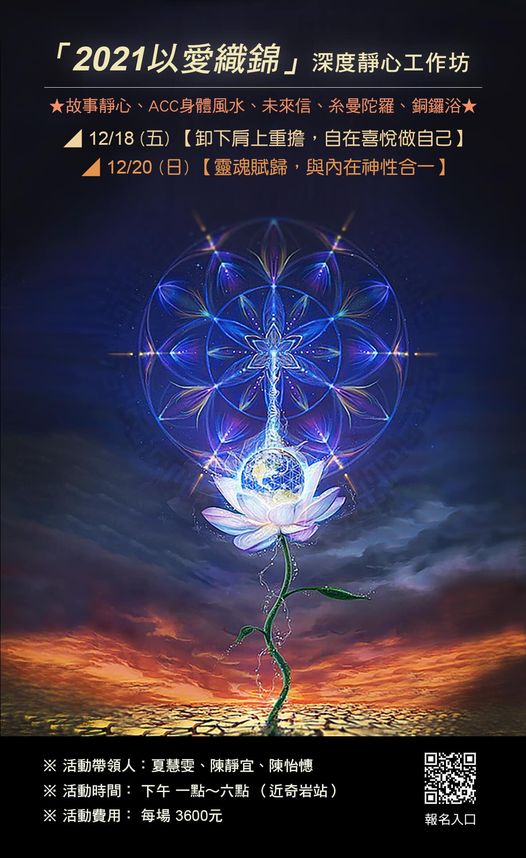 結合三位療癒師的專長與能量,我們即將在12月18日與12月20日進行兩場深度靜心工作坊。