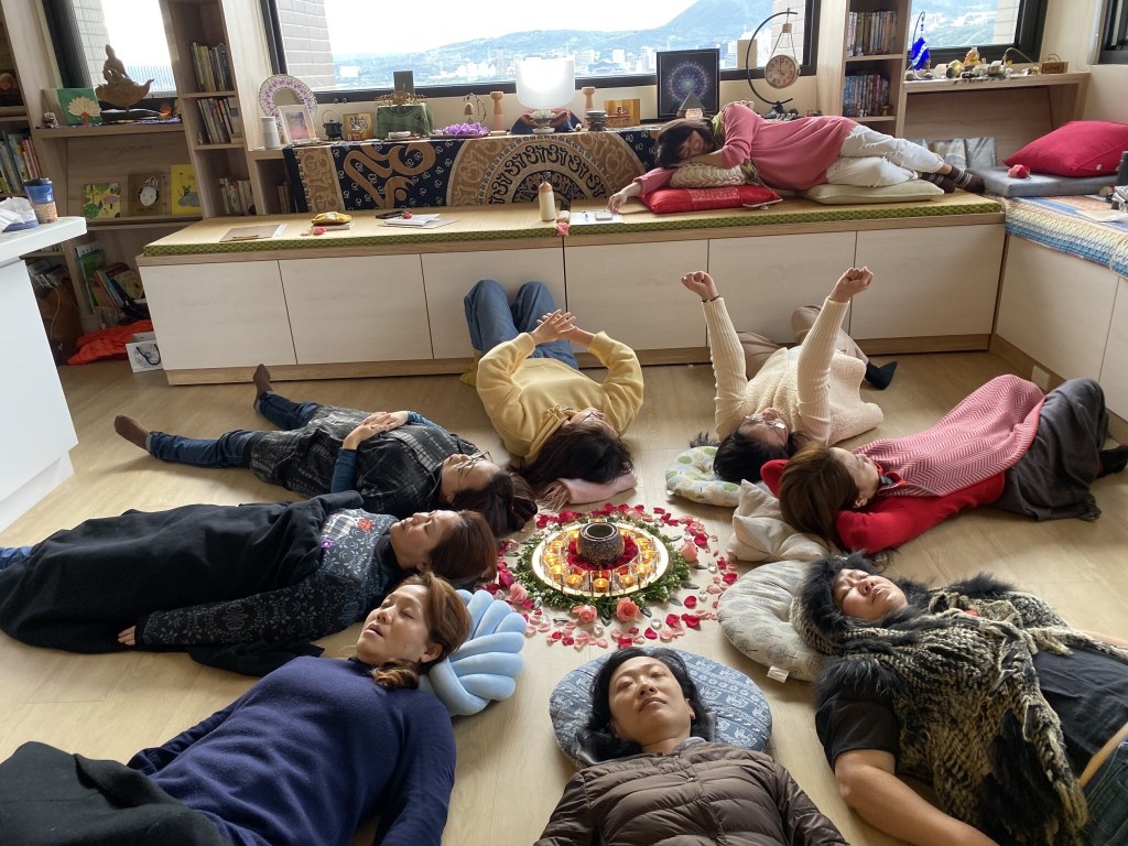 看見每個人閉上雙眼,進入故事,進入心靈秘境時,每個人神色所綻放的寧靜,是我極愛的片刻。彷彿全世界只有om的音聲,每個人既是進入各自的心靈秘室,也像是進入合一的宇宙入口。