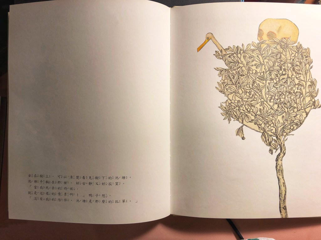 當我們上到生命頂巔的高度俯瞰生命的過往,就像鴨子掛念著池塘裡的一切,那一池就像是我們人的浮生與對人世的掛念,鴨子說著:「沒有我的陪伴,池塘看起來很孤單。」死神非常理解並承接鴨子的感傷,對牠說:「你死去的時候,池塘也會跟著消失不見……至少對你來說是這樣。」