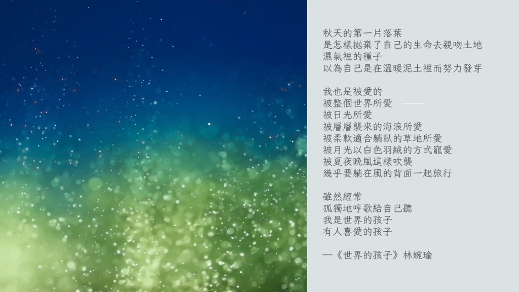 想著週六跟高雄的夥伴們在課程最後分享的這首詩