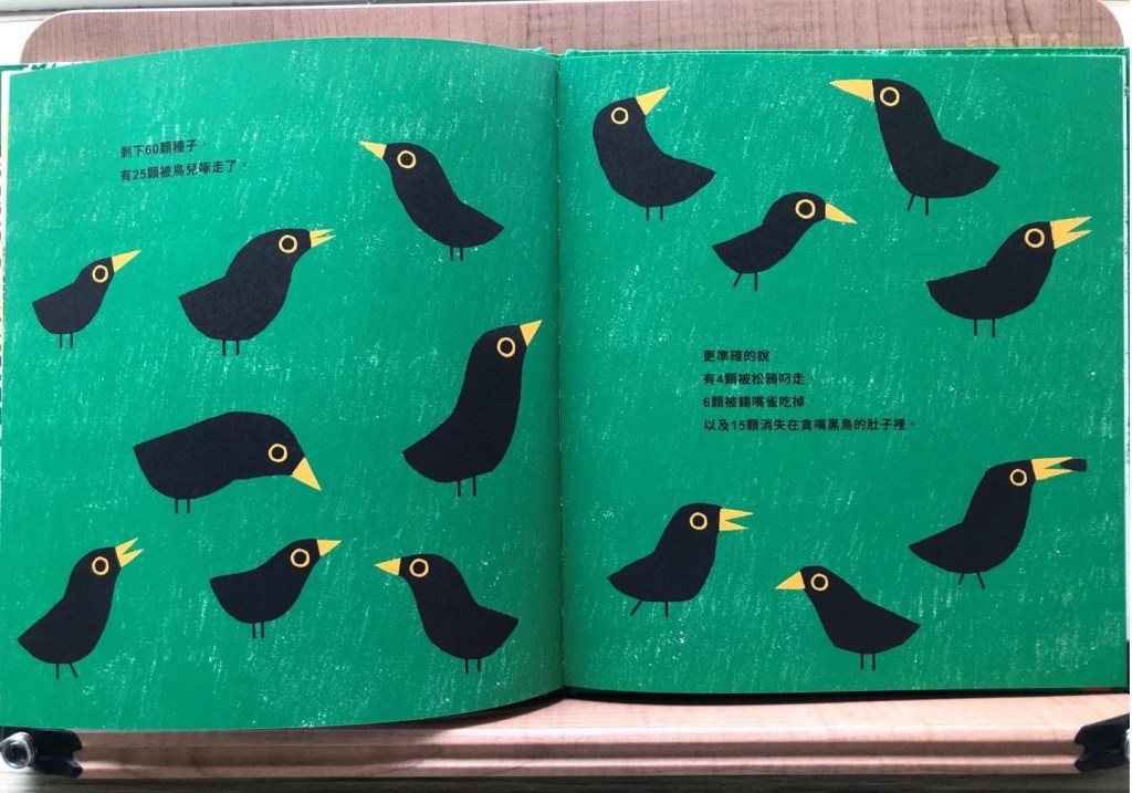 繪本故事到這裡,看起來好像已經為100顆種子的命運寫下終結。乍看之下,似乎是一段悲傷的故事,但生命其實並不像我們瞥見的一角如此脆弱,那些我們覺得毫無生機,不知去向的種子,在繪本故事的後來,一一述說了各自的出路與生機。