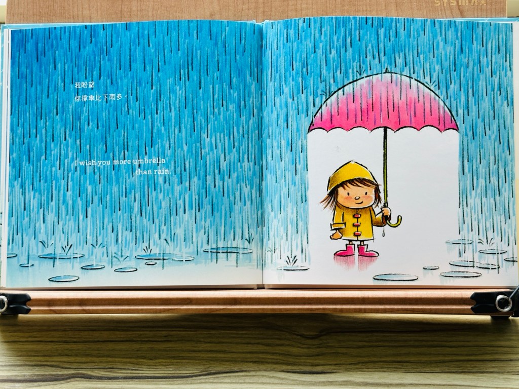 「I wish you more unbrella than rain. 我盼望,你撐傘比下雨多。」