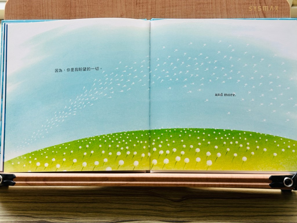 有了孩子後,隨著孩子的成長,身為父母,自然有跟隨他們年紀而增生的各式煩惱與教養上的挫折感。除了閱讀教育或心理叢書以增益親子正向的互動溝通外,總覺得心裡還有一塊柔軟需要安撫。靜心或是祈禱,是一條通往內在的道路,透過祈禱,我們期望不以自己的有限羈絆了孩子,希冀連結無限的力量,讓自己與孩子保持覺知,活出此生的豐盛。這個時候,這本溫柔且靈動俏皮的繪本《我盼望 I Wish You More》,就成為案頭上療癒靈魂的最佳推薦。