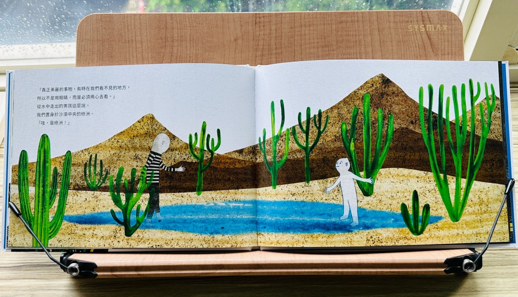 「真正美麗的事物,有時在我們看不見的地方,所以不是用眼睛,而是必須用心去看。」繪本安排小男孩對著長大後的自己,說出這句應是引自《小王子》的經典名言,又再次深刻了每個大人的內心。