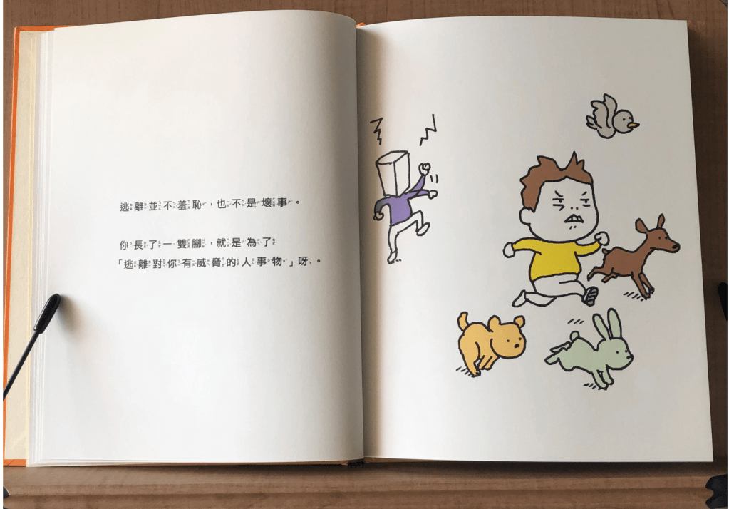啊~!原來讓我們在關係中很受傷的人,竟然是因為不太有想像力,因此想像不出他們的言行舉止會如此傷人。那麼,遇上這種人,吉竹伸介的建議就是,「為了保護你自己,從那個人身邊逃離吧!」接著提醒我們,生而有腳就是為了逃離對你有威脅的人事物,而且,逃離並不羞恥也不是壞事!