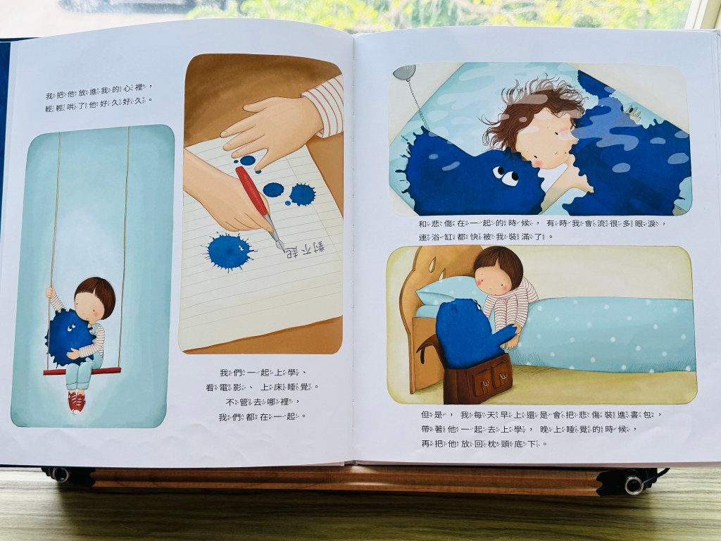 某日逛MUJI時,在店內的書架取下幾本感覺會說出好故事的繪本,《我的悲傷小精靈》是翻閱的第三本,闔上書,深呼吸,立刻將其納入生命藥方靜心書單。