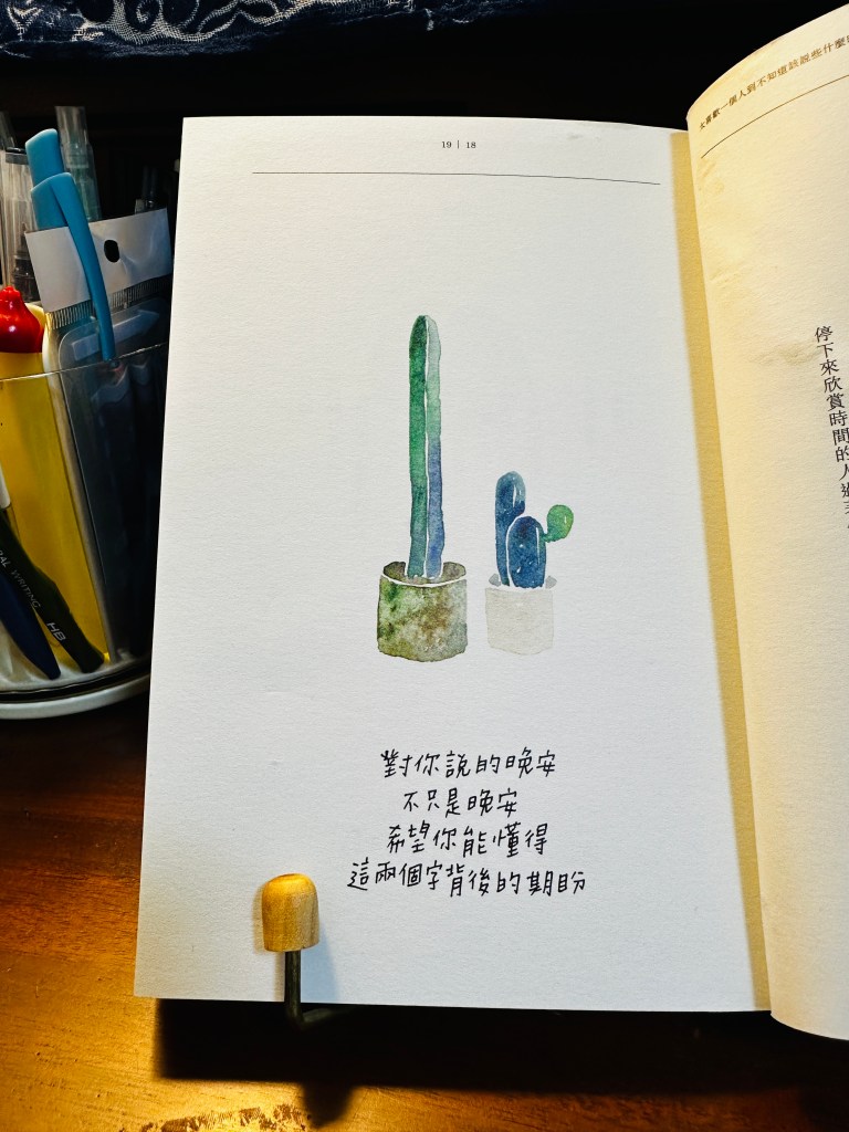2025-12-152025-12-15igugood4614在 晚安,無論你開出一朵花或得到一顆種子 發表留言 晚安,無論你開出一朵花或得到一顆種子 把晚安寫成一首詩 放在忙碌的世界裡 停下來閱讀的人開成一朵花 感同身受的人得到一顆種子 一樣的歲月 被時間追趕的人只看得見數字 停下來欣賞時間的人過著生活 ~《我與我們之間只差一句晚安》爽爽貓 by SECOND 很療癒的一本小品,睡前翻一翻,好好跟自己說聲晚安。 最近很喜歡這樣簡單的小品《我跟我們之間只差一句晚安》,放在案頭,睡前翻一翻,書跟我的靈魂說話,我在文字的香氛裡泡澡。 分享此文: 按一下即可分享至 X(在新視窗中開啟) X 按一下以分享至 Facebook(在新視窗中開啟) Facebook 喜歡 正在載入...