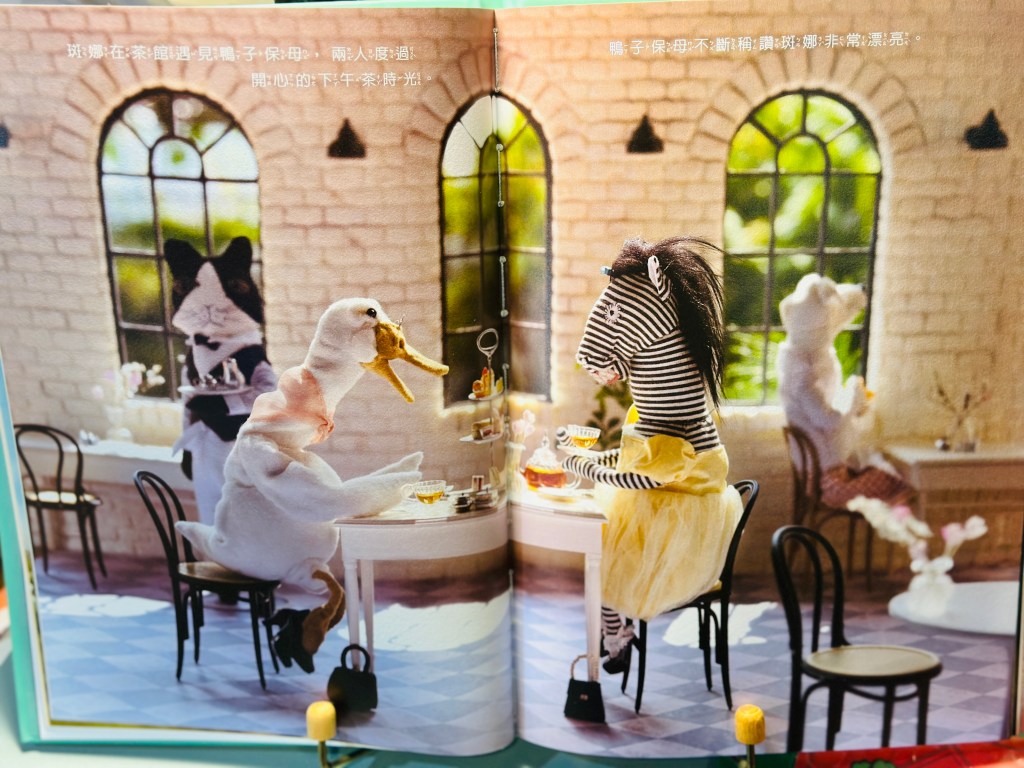 《生日快樂》是白希那最新的作品,講述斑馬女孩斑娜鎮日鬱鬱寡歡,總是足不出戶,生日前夕收到遠方神秘小阿姨送來的生日禮物—魔法衣櫥,「每天,衣櫥裡都會出現一套新衣服。只要穿著那套衣服開始新的一天,不知道為什麼,就會度過與那件衣服完美搭配的一天。」於是,跟著繪本的節奏,我們彷彿重新回憶起小時候玩紙娃娃或是芭比娃娃時,為心愛的偶各式穿搭,然後開始心愛的偶的扮家家酒時光,我們成了心愛的偶世界的主宰,包括偶的完美故事。座談會中作家也同步播放她創作時的側記影片,純然沉浸於為斑娜打扮或故事場景捏塑時的快樂神情,與會的人看著影片同時也忍不住跟著微笑。